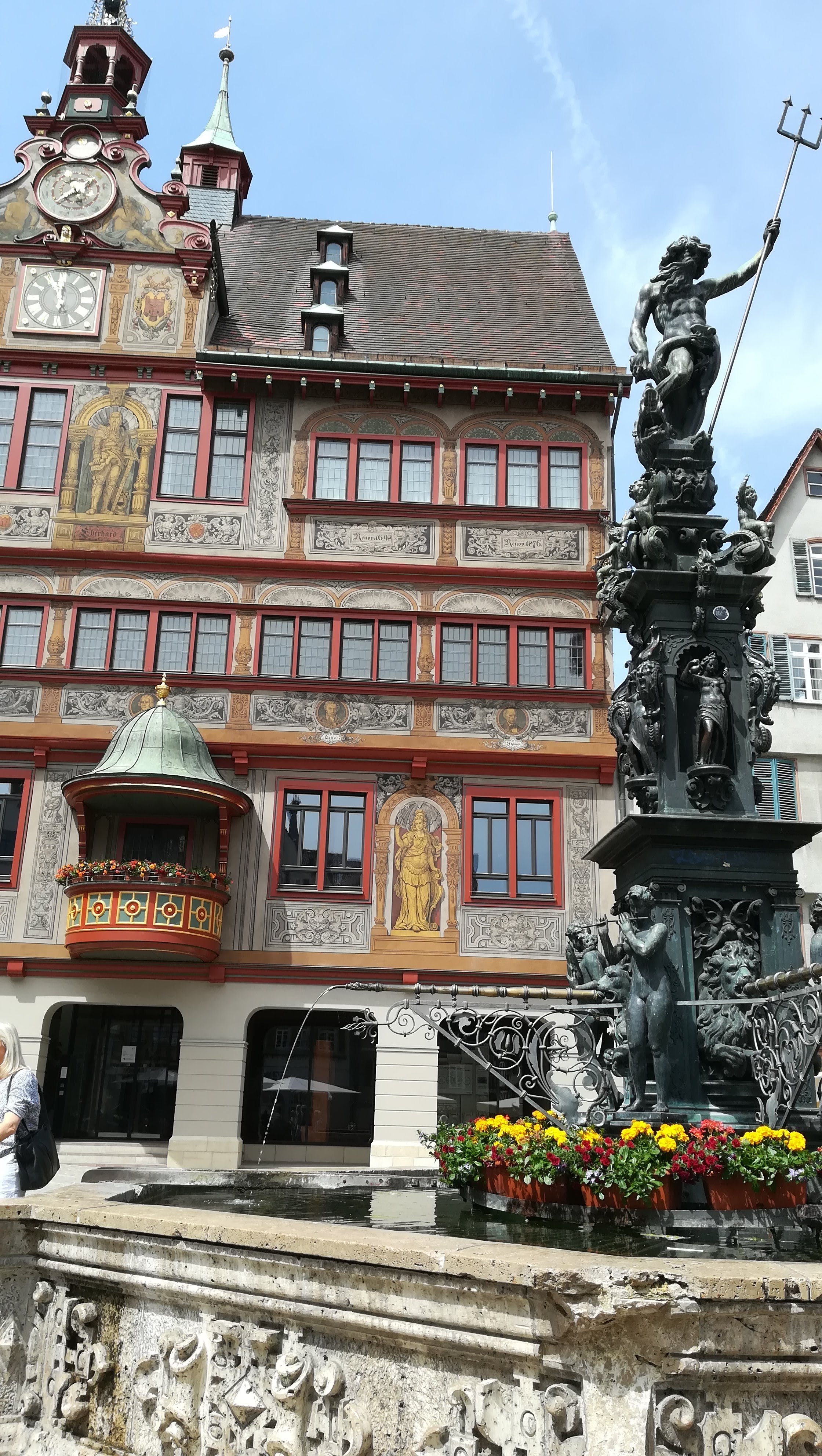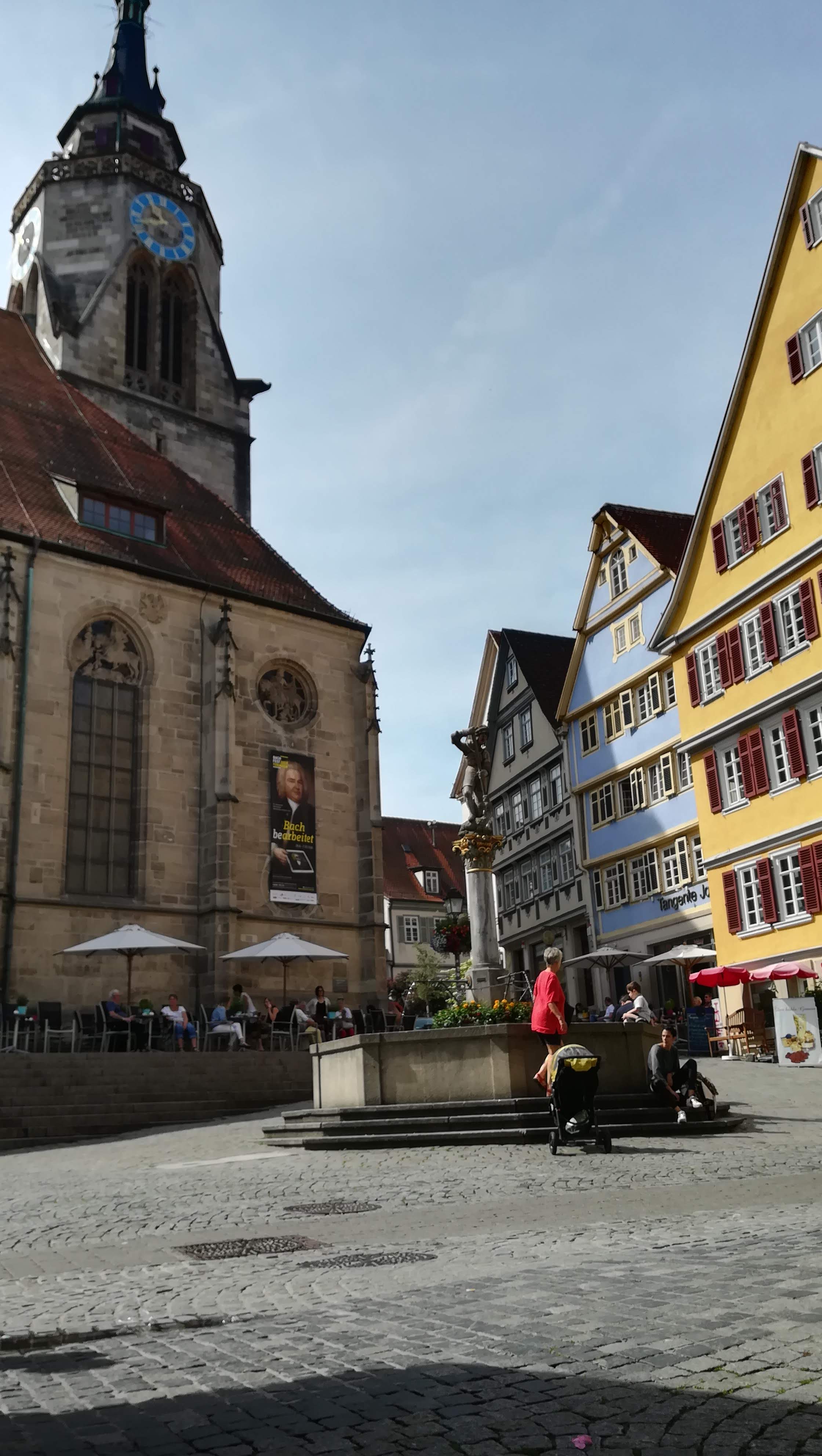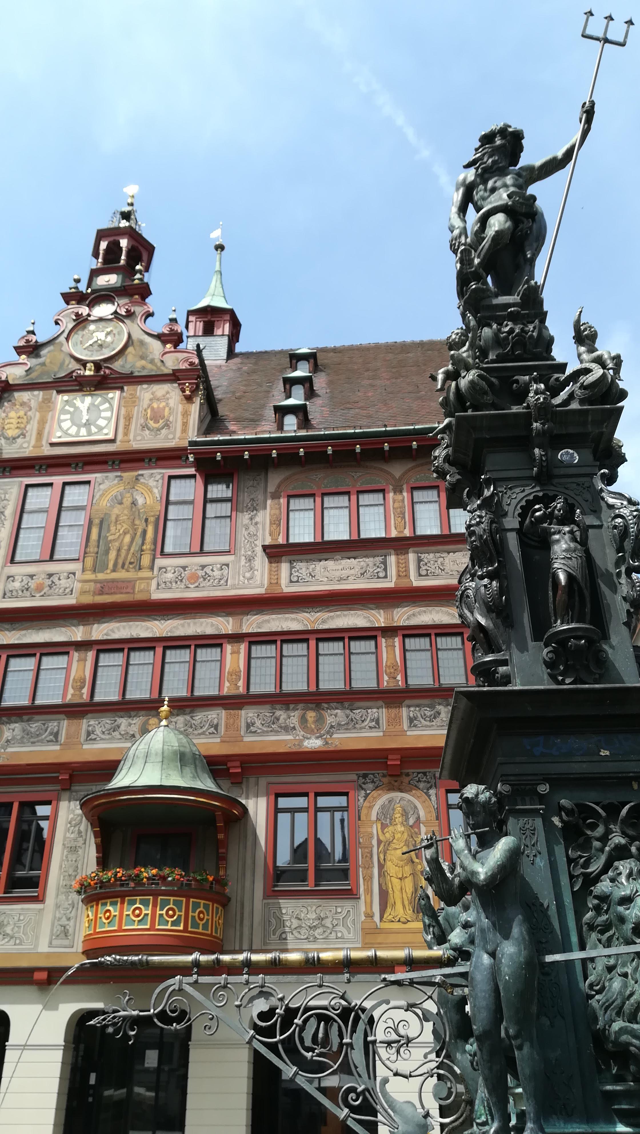 La prima cosa che abbiamo visitato è stata la chiesa evangelica Stift Kirche e la scalata al campanile dal quale è possibile vedere la città. Seconda tappa il castello: situato sopra una collinetta che sovrasta la città, è stato sede dell’università di Tubinga quindi polo importante anche dal punto di vista scientifico. Abbiamo camminato lungo le mura che circondano il castello, passando per i suoi immensi giardini, e ci siamo ritrovate in piazza del Mark Plazt dove c’è il comune Rathaus. In questa piazza è presente una fontana molto affascinante la quale è stata costruita prendendo spunto dalla fontana del Nettuno di Bologna. Un altra chicca di questa città è l’isoletta nel fiume Nekar. Tra le varie cose, quello che mi ha colpito di questa isoletta è la sensazione che si ha camminandoci: non sembra proprio di stare in una città, sei immerso in questo boschetto con alberi altissimi, qualche statua di personaggi che hanno segnato la storia e tutto intorno a te c’è il fiume nel quale i tedeschi fanno il bagno e lo percorrono con barchette e zattere.