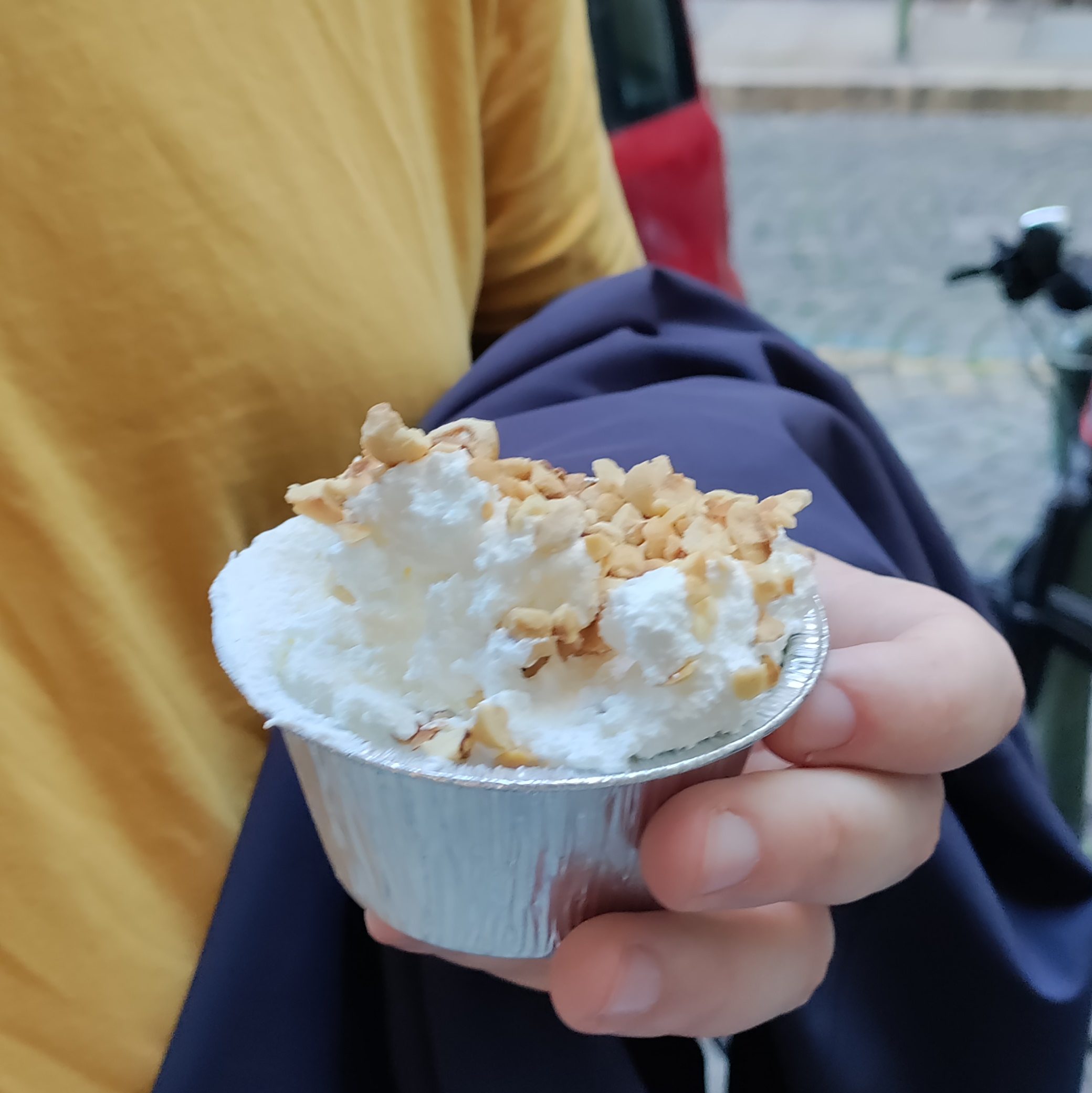 - Latteria Bera: abbiamo provata la loro famosa crema ala panna. Ordinata in due versioni, una semplice e l’altra con la granella di nocciole. Nonostante io non sia una grande amante della panna, questa si sentiva proprio che era fresca. Con una consistenza e un livello di dolcezza che non mi ha stancato dopo il primo assaggio.
